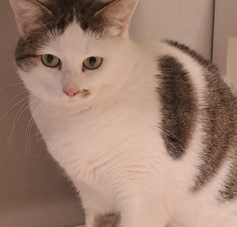 Joy is een katje dat nog niet sociaal is en mensen voorlopig liever op afstand houdt. Ze observeert eerst en voelt zich het veiligst wanneer ze zelf mag bepalen hoe dichtbij iemand komt. Aaien of actief contact laat ze op dit moment niet toe, en dat respecteren we volledig.